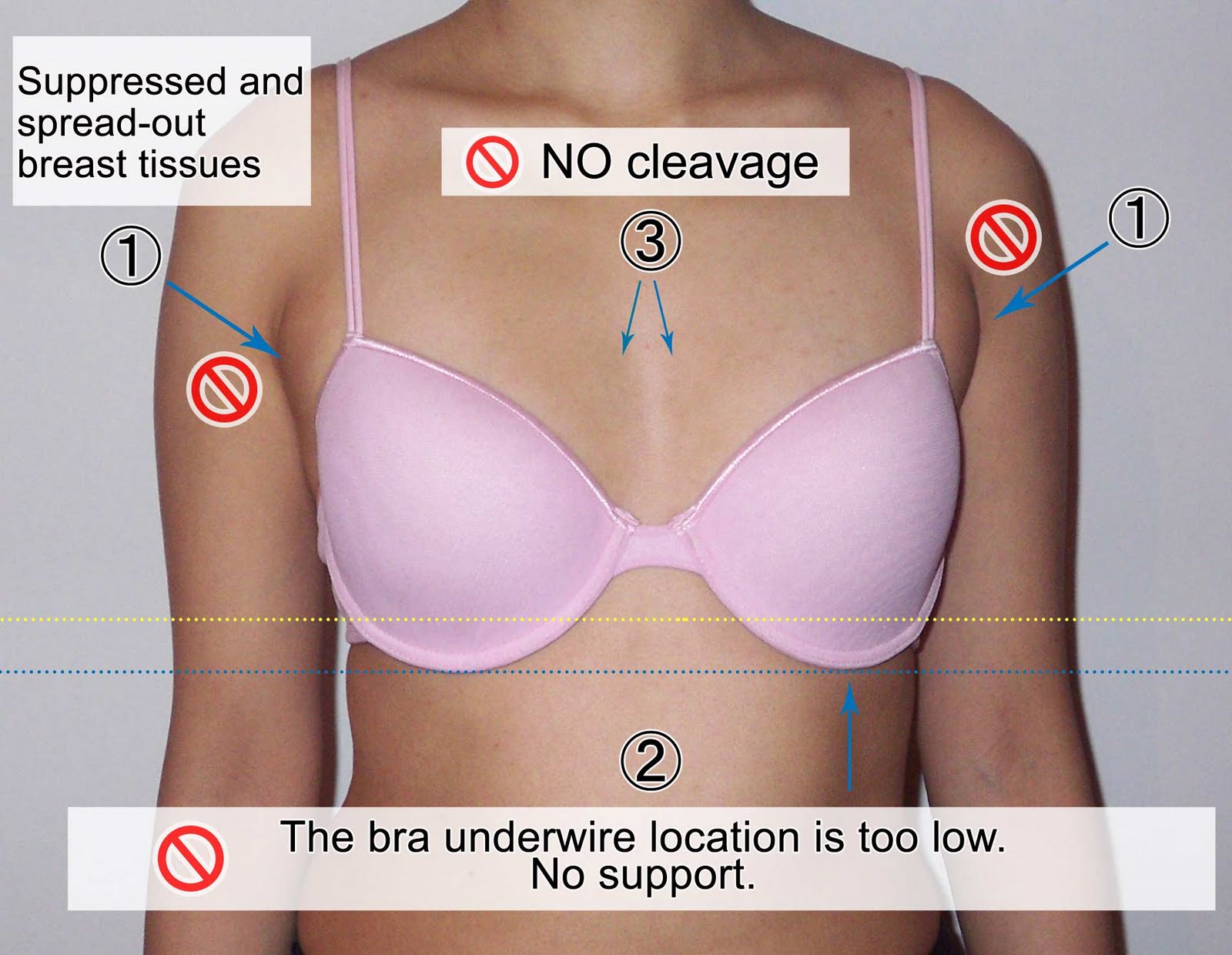 - After wearing a bra, you should have a clearly defined cleavage line. It shouldn’t be all squashed up.
