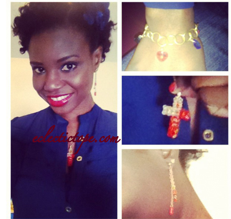 I am self taught and I have been making jewellery since 2004. The jewellery I make are like my babies, birthed from the excesses of my creative mind., children of my imagination. I spend a lot of time deciding on colour, stone, design and durability of each item. I even wear a copy over a period of time to test the durability and provide customers with the best. All my business work is done on my own, so my skills have expanded from jewellery making to picture taking, managing my Etsy shop, dressing models, learning the art of cyber selling and creating an online presence. You can order pieces from my shop online, and they are shipped from Lagos, Nigeria to the world.
